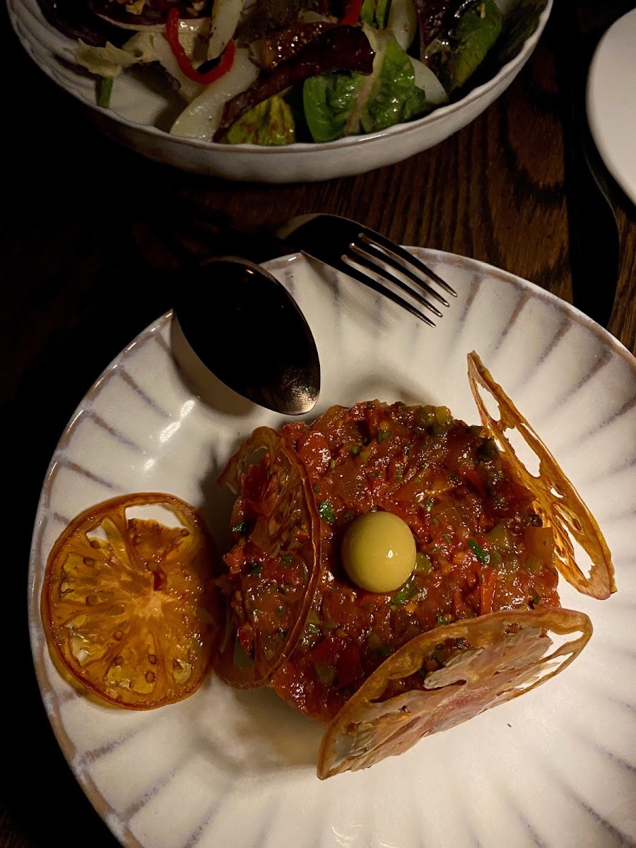 Among the highlights, you'll find Steak Tartare and Beef Tartare, both showcasing the finest cuts of meat, prepared to perfection for a melt-in-your-mouth experience. For seafood lovers, Carabineros Al Ajillo and Sea Bass are fantastic options that bring the freshness of the ocean right to your table. The Fish Soup, rich in flavor, is a crowd favorite, along with the aromatic Rice Pilaf, a perfect complement to any main course.